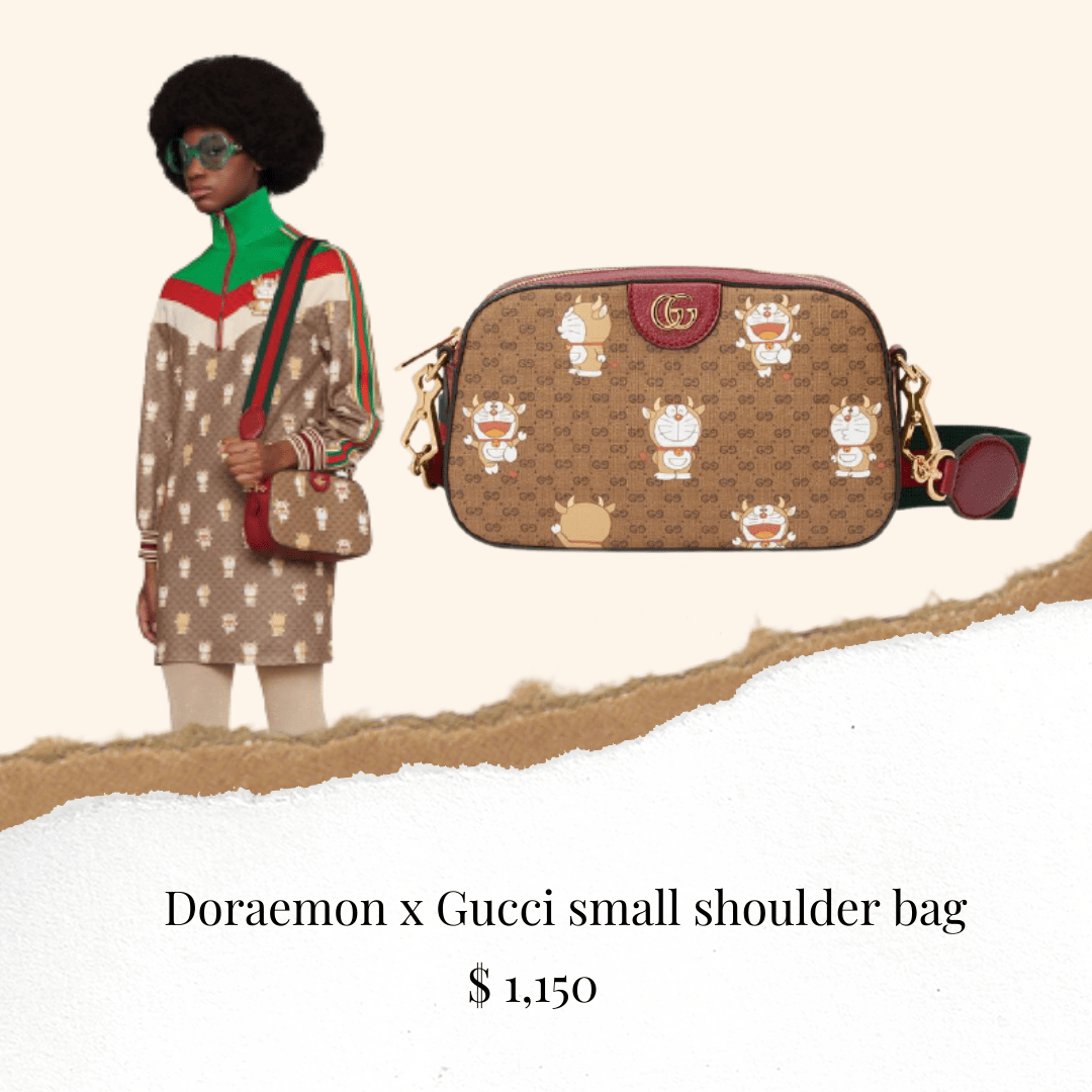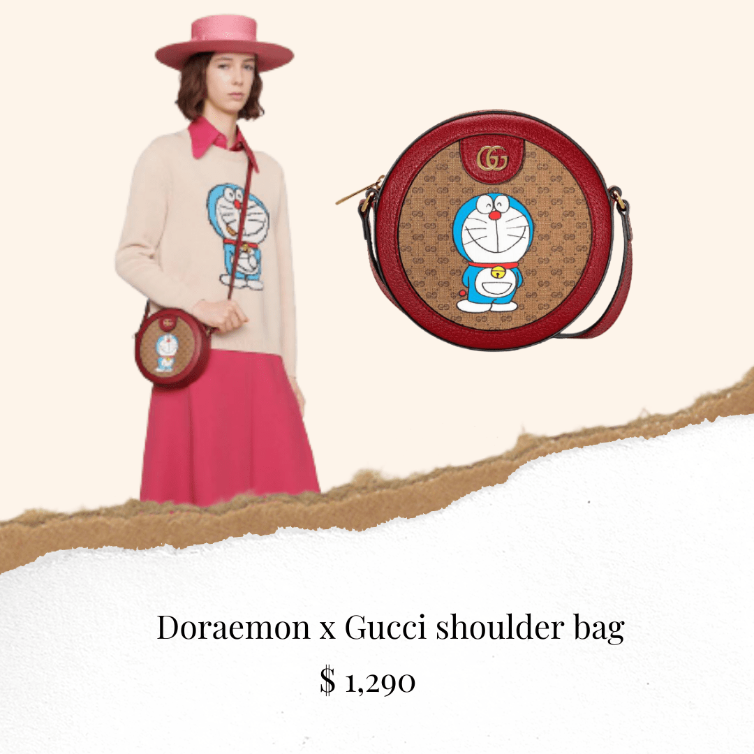 Doraemon x Gucci shoulder bag เป็นส่วนหนึ่งของความร่วมมือพิเศษระหว่างโดราเอมอนและกุชชี่กระเป๋าสะพาย GG Supreme ขนาดเล็กนี้มีชีวิตชีวา พิมพ์ลาย Doramon ที่ทาง Gucci ได้ Design พิเศษขึ้นมาเพื่อ collection นี้โดยเฉพาะ ! บอกเลยว่าเลยว่าน่ารักมาก เป็นกระเป๋าที่สะพายแล้วคล่องตัวอีกต่างหาก เหมาะกับการใช้ในชีวิตประจำวันอีกต่างหาก