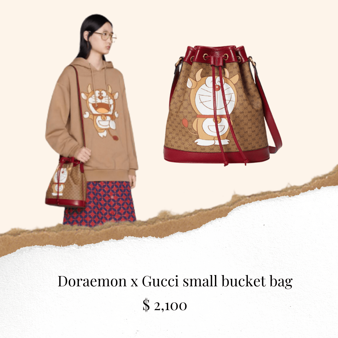 ใครที่เป็นสาวกของกระเป๋าเล็กๆน่ารัก และเป็น แฟนคลับการ์ตูนอมตะสุดฮิตอย่าง โดราเอมอน จะต้องชอบกระเป๋าใบนี้ กับ Doraemon x Gucci mini bucket bag ที่เป็นการนำ รุ่นฮิตของ Gucci อย่าง Mini bucket bag มาสร้างสรรค์ใหม่ โดยการพิมพ์ลาย โดราเอมอน เข้าไป บอกเลยว่า สะพายไปไหนก็น่ารัก มีแต่คนมองแน่นอน แถมเก็บสะสมไว้ก็ปังอีกไม่แพ้กัน เพราะเป็น collection limited ที่ผลิตออกมาเฉพาะ ตรุษจีน 2021 ที่หาไม่ได้จากที่ไหนอีกแล้ว