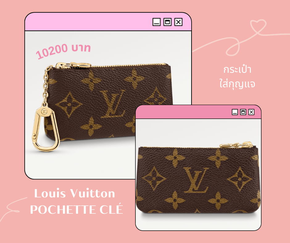กระเป๋าใส่กุญแจสารพัดประโยชน์ จากแบรนด์ Louis Vuitton ตัวกระเป๋าทำจากแคนวาสลาย Monogram iconic จากหลุย ด้วยขนาดกระเป๋าที่เล็ก คุณผู้หญิงสามารถที่จะพกไปได้ทุกที่ และตัวกระเป๋ายังมาพร้อมกับห่วงคล้อง ที่สามารถนำไปคล้องกับกระเป๋าใบอื่นๆได้อีกด้วย ตัวกระเป๋าเองก็มีขนาดที่เหมาะสมกับการใส่กุญแจ เหรียญ หรือธนบัตรแบบพับก็ย่อมได้ ราคาค่าตัวน้องอยู่ที่ประมาน 10,200 บาท